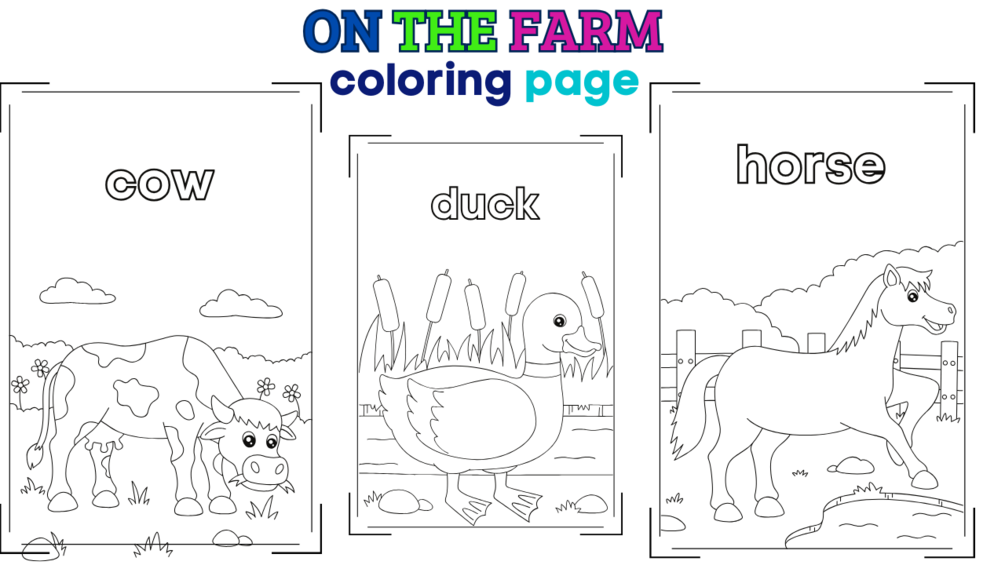 Cute and engaging farm scenes featuring animals like cows, pigs, chickens, sheep, and ducks.